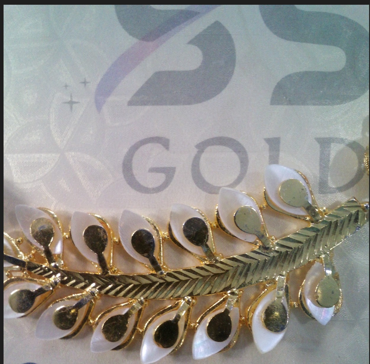 Choker Necklace on Shell Leaf Gold Plated with Earrings. Awesome design.